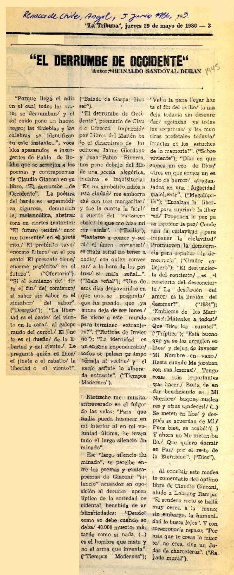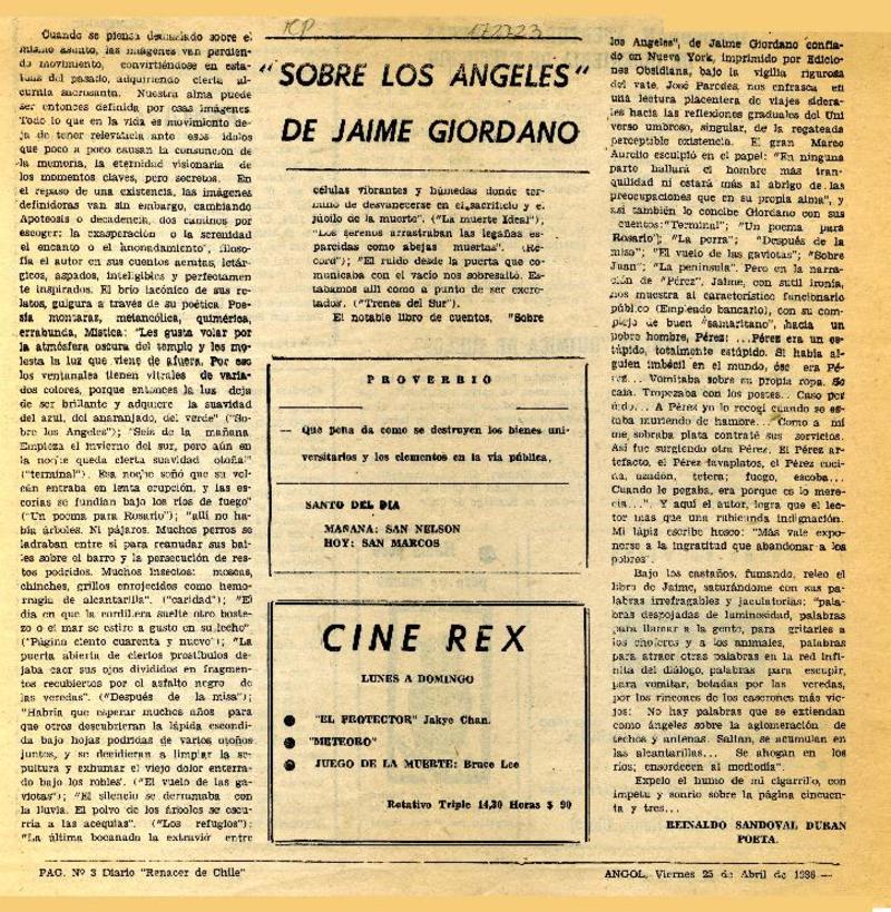 "Sobre Los Angeles" [artículo] Reinaldo Sandoval Durán.