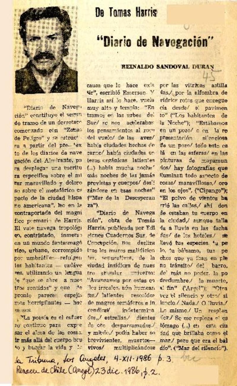 "Diario de navegación" [artículo] Reinaldo Sandoval Durán.