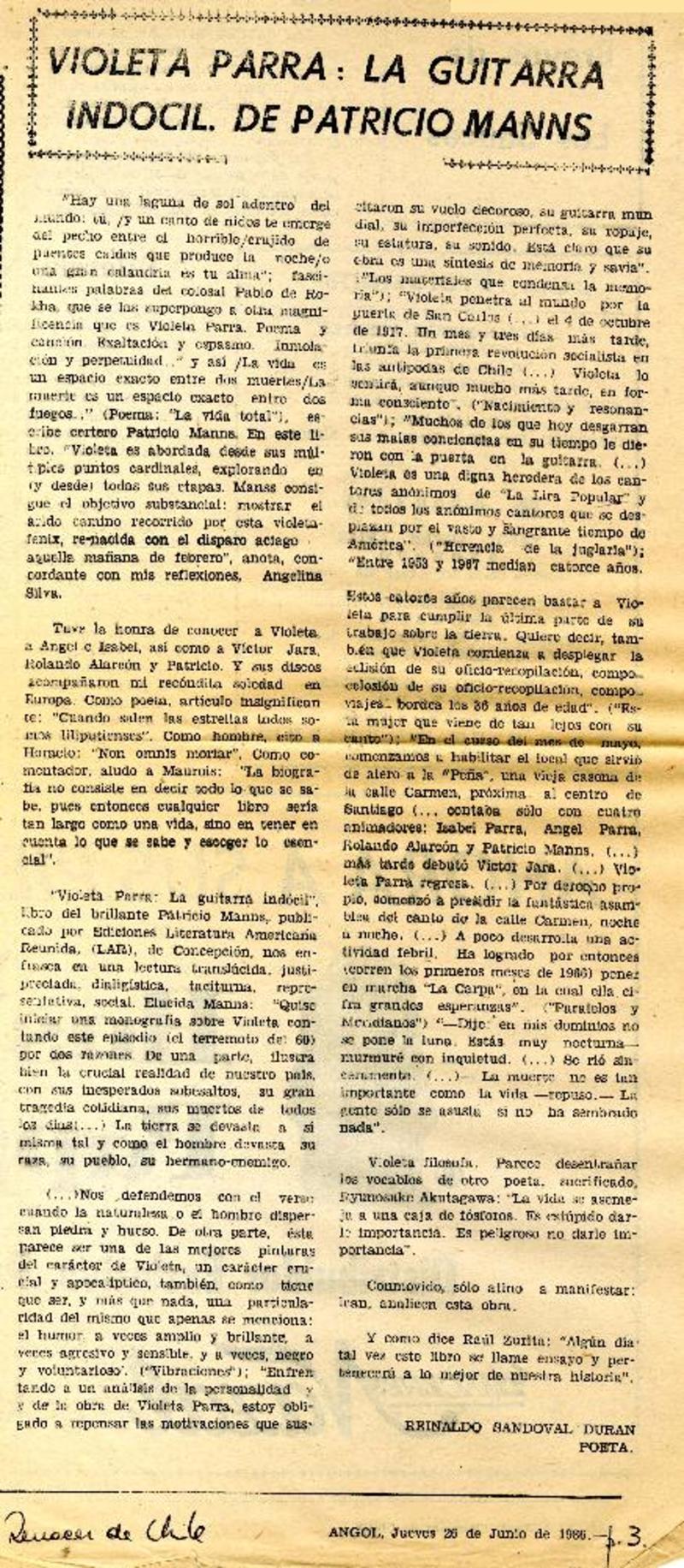 "Hondo sur" [artículo] Reinaldo Sandoval Durán.