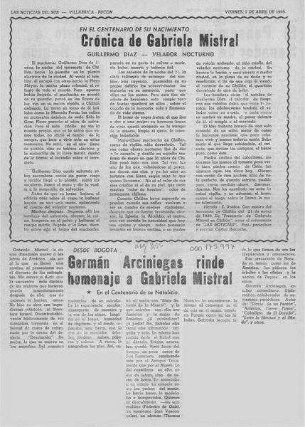 Germán Arciniegas rinde homenaje a Gabriela Mistral [artículo] Germán Arciniegas.