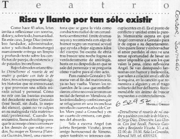 Risa y llanto por tan sólo existir [artículo] Marcelo Cabello