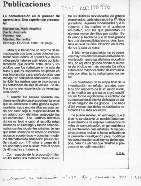 GARCIA HUIDOBRO, JUAN EDUARDO - COX, CRISTIAN - FORMACION DEL PROFESORADO EN CHILE 1842-1987, LA - QUE PUEDEN ESPERAR LOS JOVENES DE LA EDUCACION? - JOVENES POBLADORES Y EL ESTADO, LOS - WEINSTEIN, JOSE - GYSLING, JACQUELINE - QUE PUEDEN ESPERAR LOS POBRES DE LA EDUCACION? - ZUÑIGA, LUIS