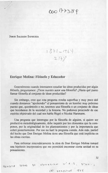 Enrique Molina, filósofo y educador [artículo] Jorge Salgado Sanhueza.