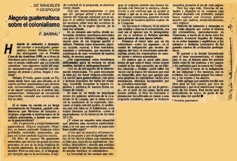 Alegoría guatemalteca sobre el colonialismo [artículo] F. Barral.