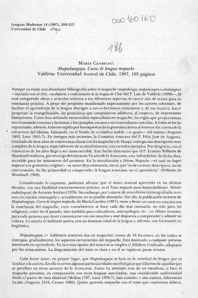 Mapudunguyu, curso de lengua mapuche [artículo] Gilberto Sánchez.