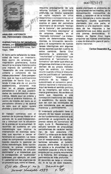 Análisis histórico del periodismo chileno [artículo] Carlos Ossandón B.