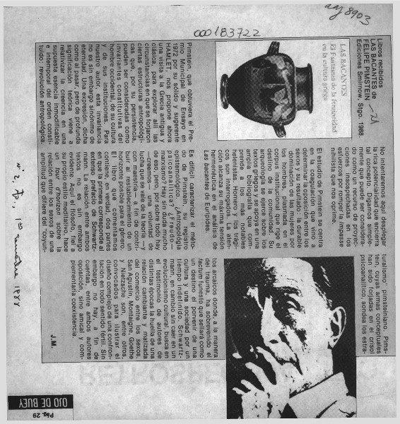 Las bacantes de Felipe Pimstein [artículo] J. M.