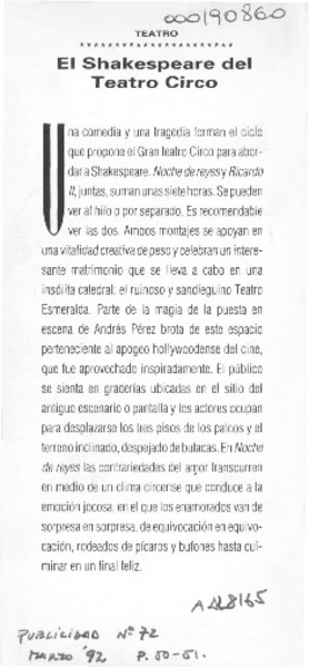El Shakespeare del teatro circo [artículo].