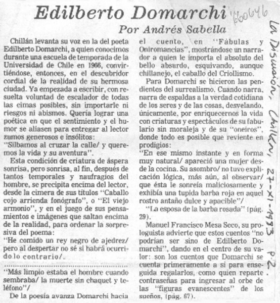 Andrés Sabella [artículo] Ernesto Vásquez Méndez.