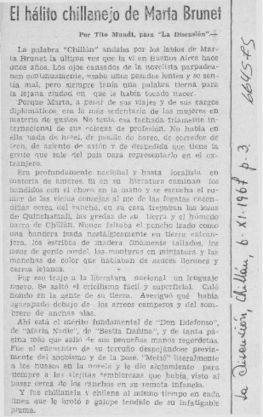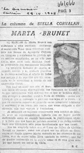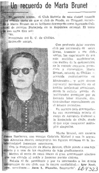 Un recuerdo de Marta Brunet. [artículo]Igor Novicow