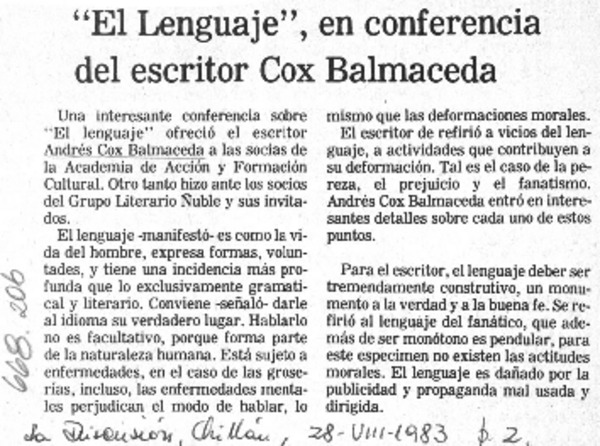 Andrés Cox Balmaceda en grupo literario. [artículo]