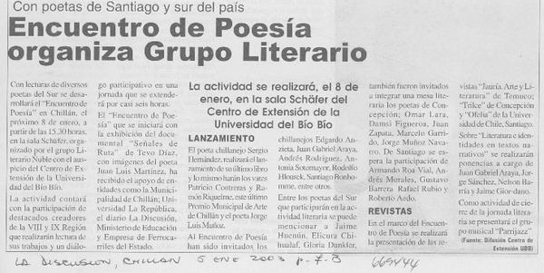Un Poeta chillanejo invitado a encuentro literario en Valpso. [artículo]