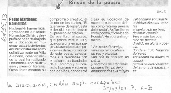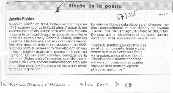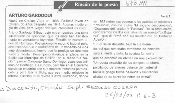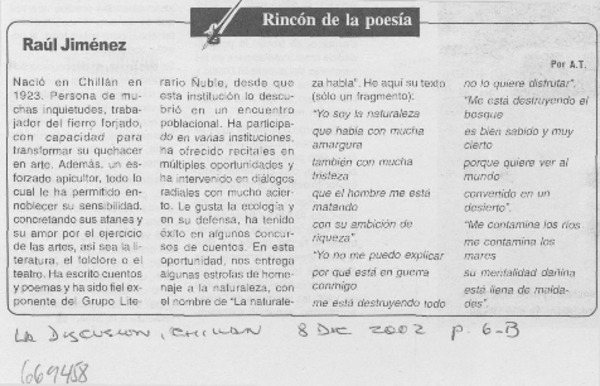 Un poeta chillanejo [artículo] Alberto Arraño.