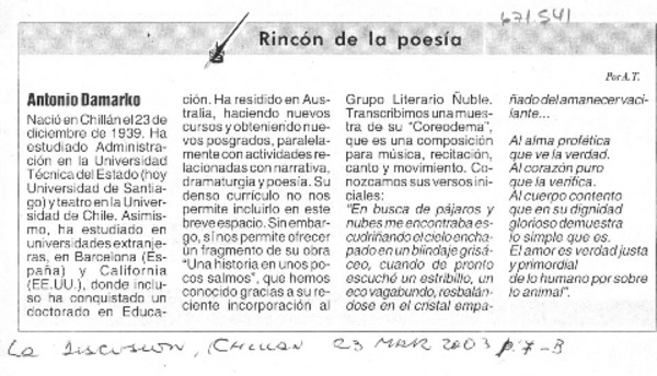 Un poeta chileno nacido en Mallorca [artículo] Armando León Pacheco.