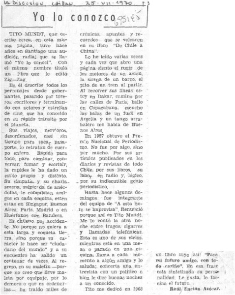 Yo lo conozco [artículo] Raúl Encina Azócar.