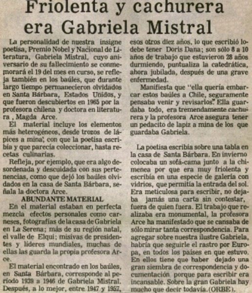 Y otra vez Gabriela Mistral" [artículo] Alfonso Larrahona Kästen.