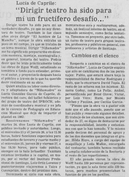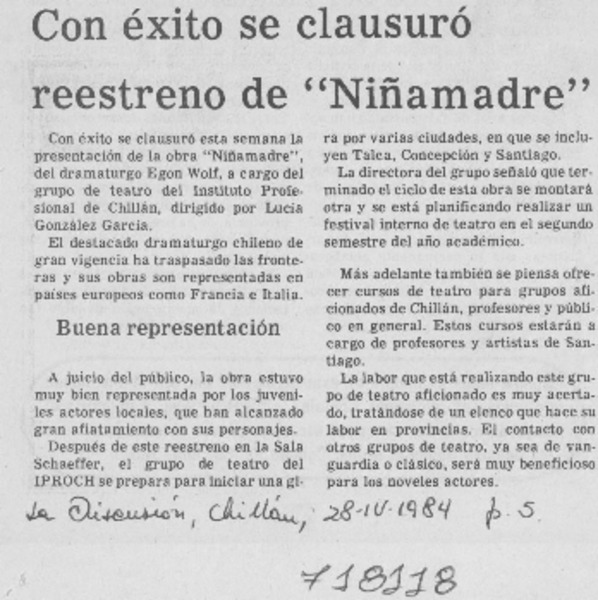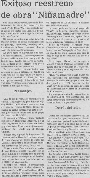 Unicas presentaciones en Chillán para "El secreto" y "Carolina". [artículo]