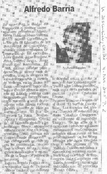 Al poeta Alfonso Calderón presenta hoy Grupo Literario Ñuble: recital. [artículo]