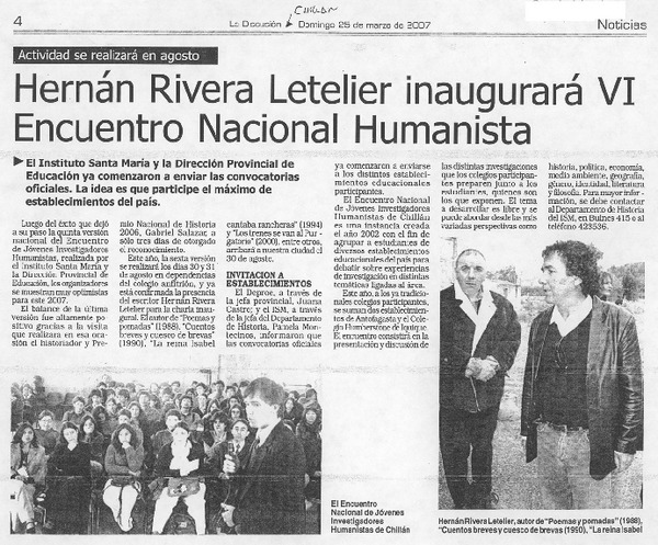 Visita de escritores nacionales Stella Corvalán y Claudio Solar. [artículo]