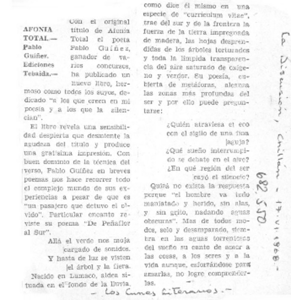 Autores chilenos - Guíñez, Pablo - Afonía total