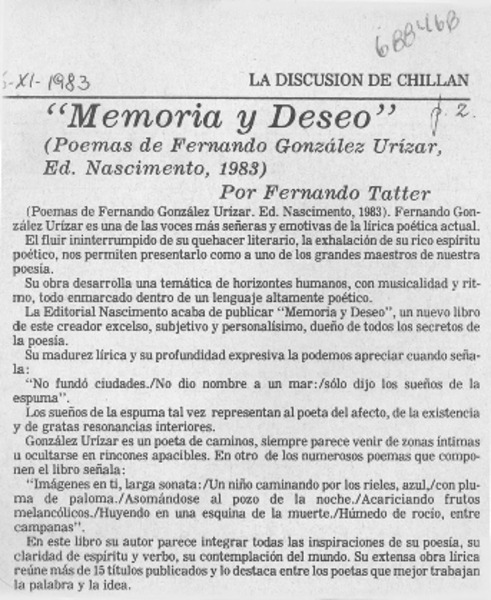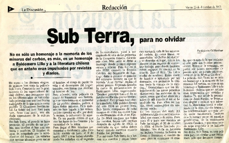 Un día del cual tengo ya el recuerdo [artículo] Luis Contreras Jara.