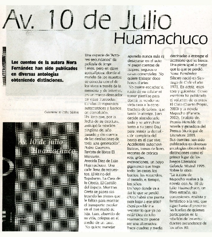 Vivir para contarla" [artículo] Ena Ferrada Ortiz.