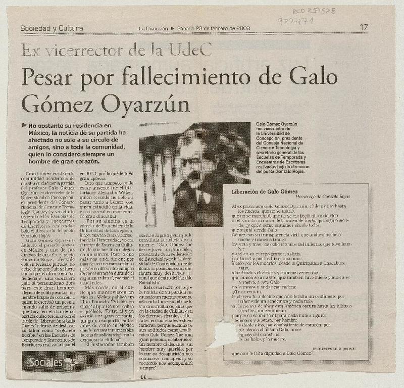 Afinan actividades para postular al Nobel a Gonzalo Rojas [artículo]