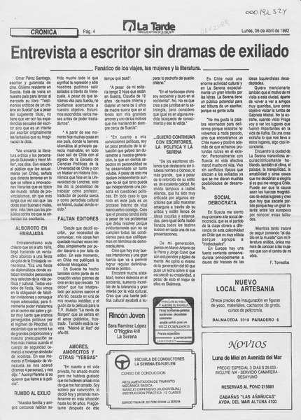 Entrevista a escritor sin dramas de exiliado [artículo] F. Torrealba.