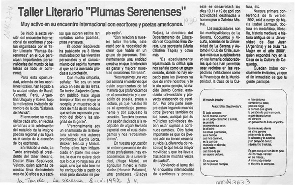 Taller Literario "Plumas serenenses" [artículo].
