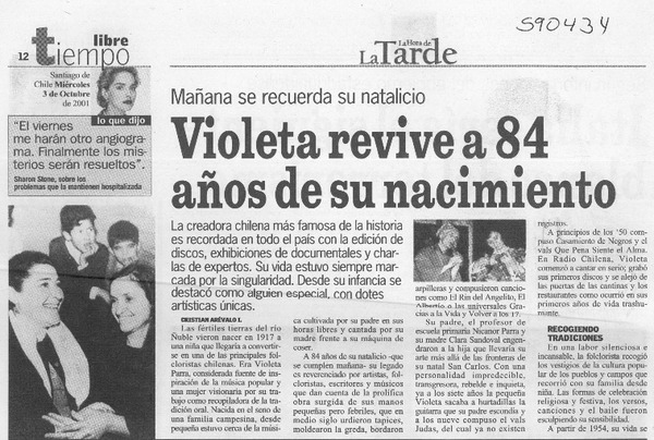 Violeta revive a 84 años de su nacimiento [artículo] Cristián Arévalo I.