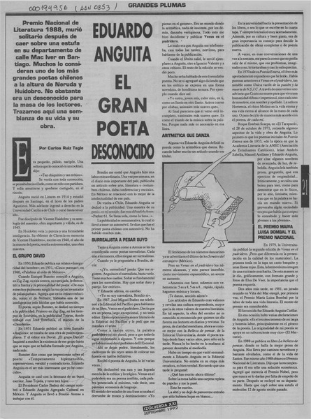Eduardo Anguita, el gran poeta desconocido [artículo] Carlos Ruiz Tagle.