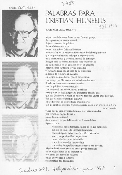 Palabras para Cristián Huneeus [artículo] Enrique Lihn.