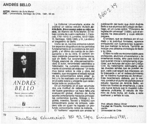 Andrés Bello [artículo] Alfredo Matus Olivier.