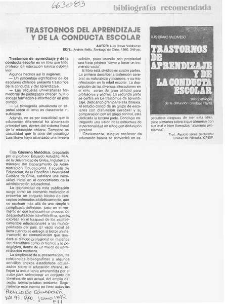 Autores chilenos - Bravo Valdivieso, Luis - Trastornos de aprendizaje de la conducta escolar