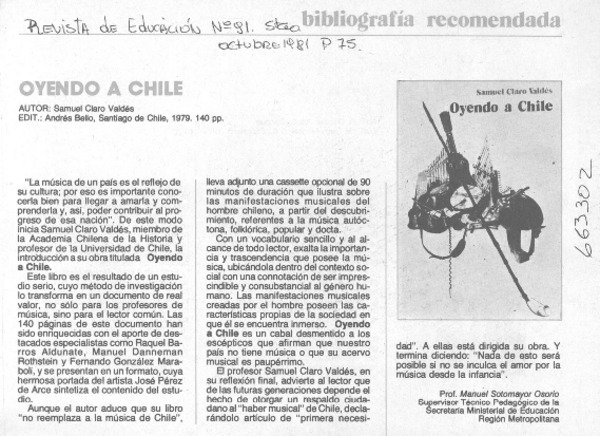 Oyendo a Chile [artículo] Manuel Sotomayor Osorio.