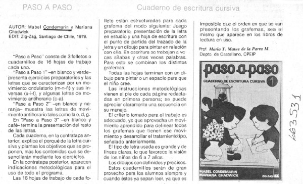 Chadwick, Mariana - Autores chilenos - Condemarín, Mabel - Paso a paso