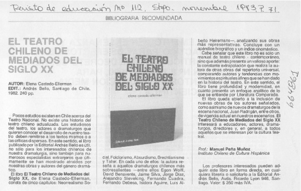 El teatro chileno de mediados del siglo XX [artículo] Manuel Peña Muñoz.
