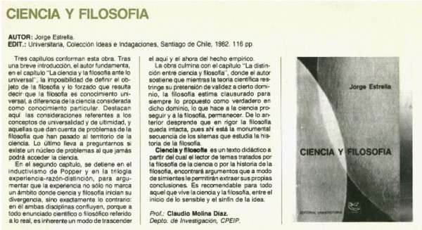 Ciencia y filosofía - Estrella, Jorge - Autores chilenos