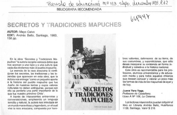 Secretos y tradiciones mapuches [artículo] Juana Vera Vega.