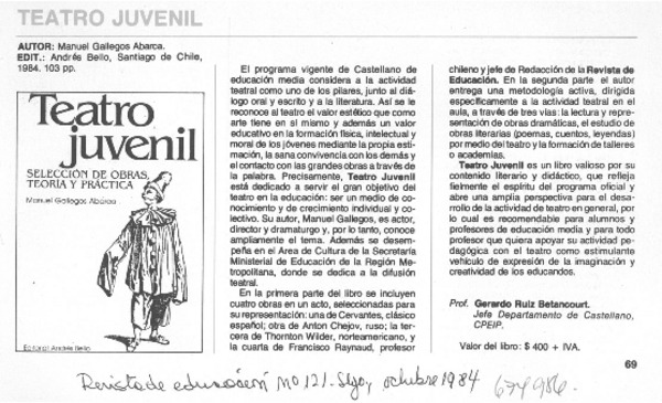 Teatro juvenil [artículo] Gerardo Ruiz Betancourt.