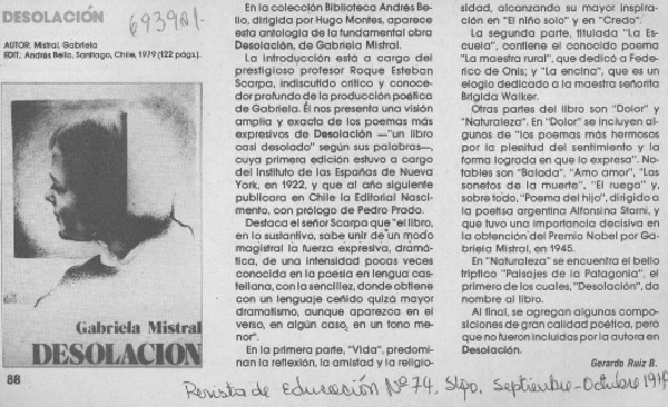 Autoras chilenas - Mistral, Gabriela - Desolación