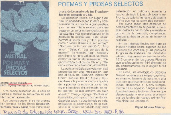 Poemas y prosas selectos [artículo] Miguel Moreno Monroy.
