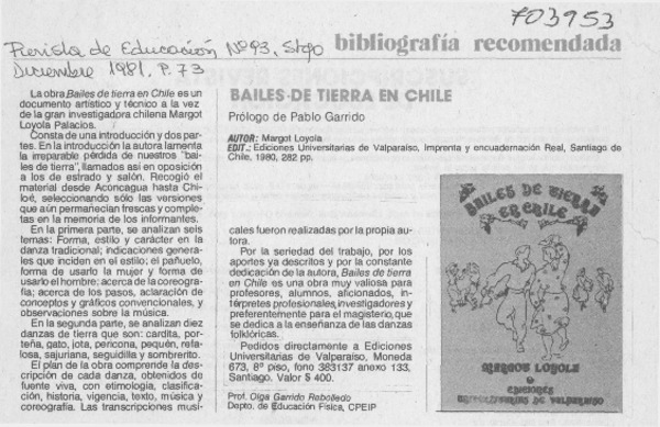 Autores chilenos - Loyola, Margot - Bailes de tierra en Chile