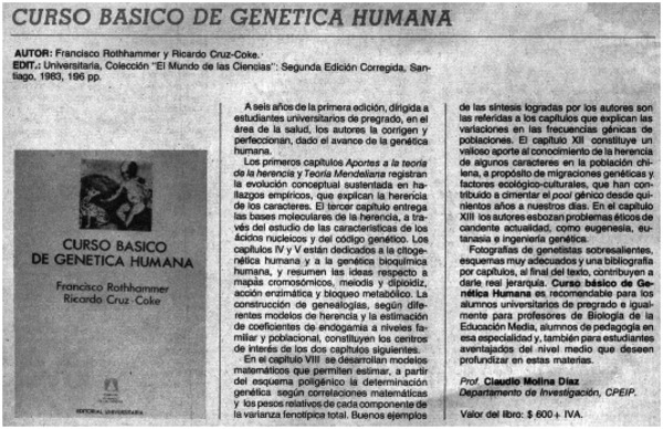 Curso básico de genética humana - Autores chilenos - Cruz-Coke, Ricardo - Rothhammer, Francisco