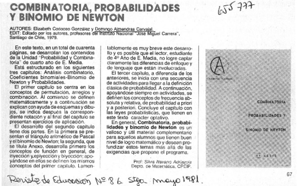 Autores chilenos - Almendras Carvajal, Domingo - Combinatoria, probabilidades y binomio de Newton - Codoceo González, Elizabeth