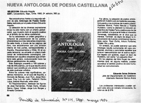 Nueva antología de poesía castellana [artículo] Eduardo Salas Ordenes.