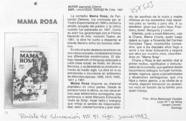 Autores chilenos - Wolff, Egon - Parejas de trapo - Mama Rosa - Debesa, Fernando