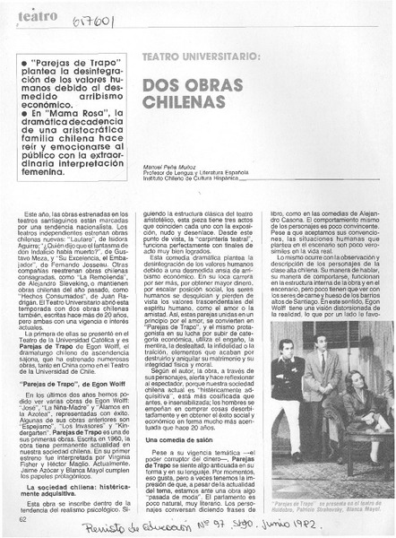 Dos obras chilenas [artículo] Manuel Peña Muñoz.