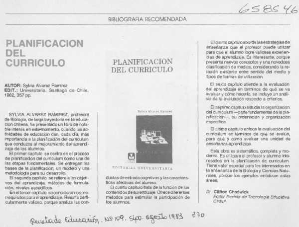 Planificación del curriculo [artículo] Clifton Chadwick.