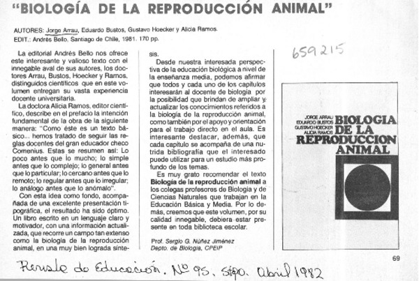 Autores chilenos - Hoecker, Gustavo - Arrau, Jorge - Biología de la reproducción animal - Bustos O., Eduardo - Ramos, Alicia